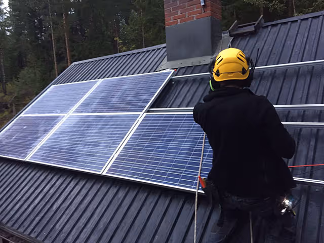 Vaativissa aurinkosähköasennuksissa ammattitaito joutuu koetukselle. Katoilla liikkuminen on haastavaa ja kohteet ovat rakenteeltaan erilaisia. Työtä tehdään ympäri vuoden, eivätkä Suomen vaihtelevat sääolosuhteet tee asentamisesta helppoa. Onneksi tekemiseen on muodostunut tietyt rutiinit, jotka helpottavat asentamista